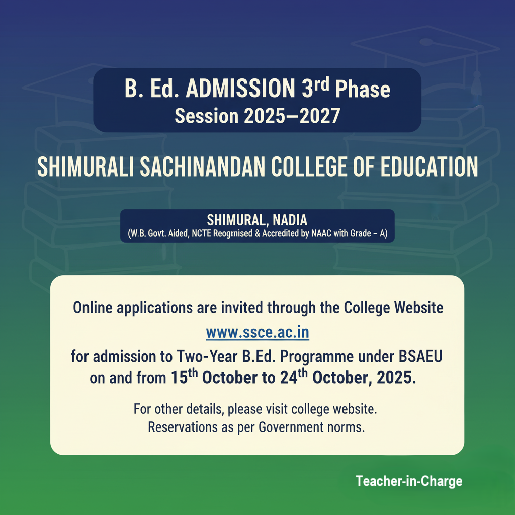 Heartiest welcome to Shimurali Sachinandan College of Education, Shimurali, Nadia, West Bengal for an ameliorating educational environment. Being Head of the Institution, I welcome each and every visitor for visiting our college website and to embark on the journey.